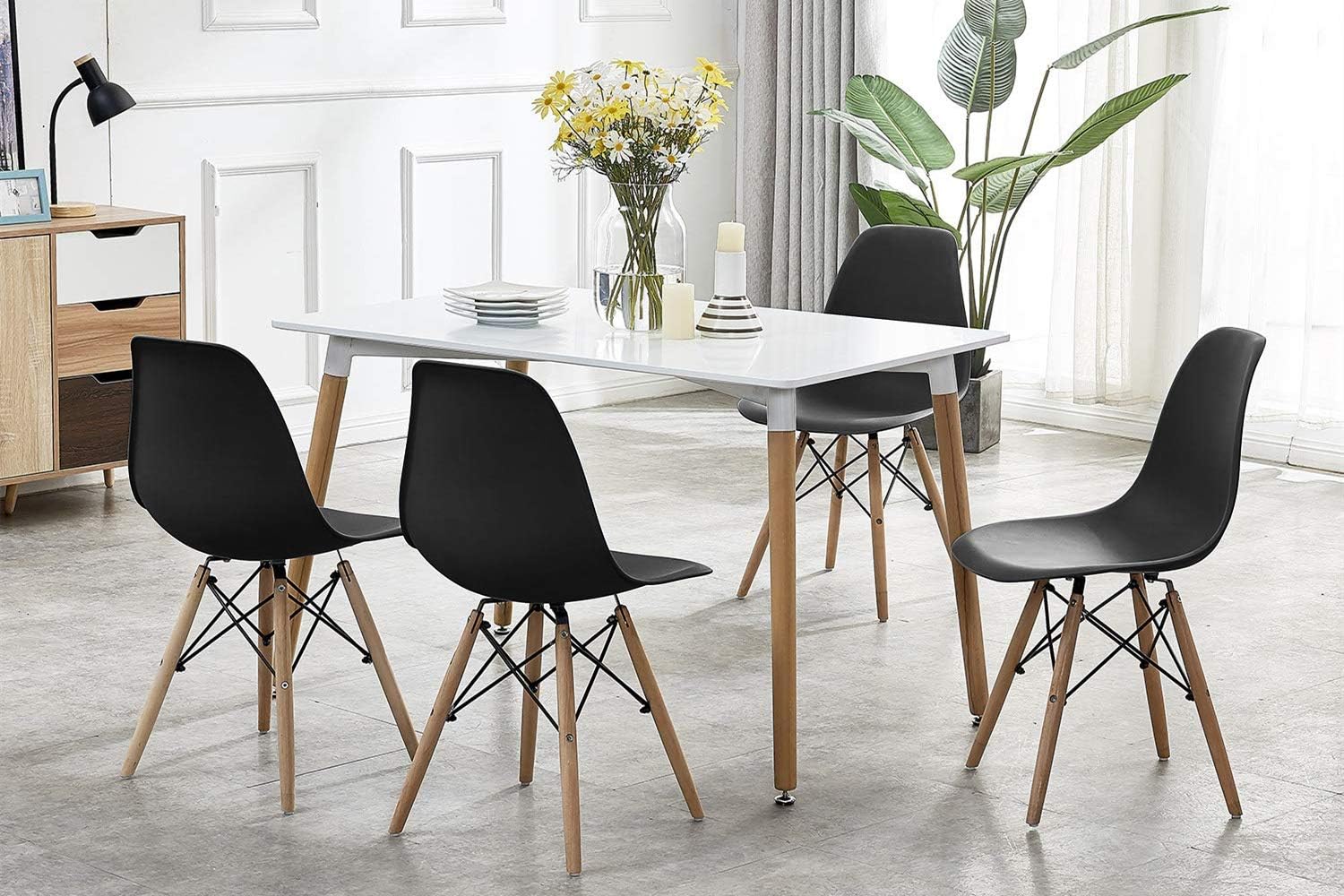 Black And White Modern Farmhouse Kitchen With Long Dining Table See This Instagram Ph Long Dining Room Tables Black Dining Room Table Modern Farmhouse Dining from i.pinimg.com